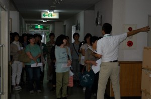 日時:平成27年9月16日(水) 13:00~ 場所:あかね荘、明日香 くすのき特別支援学校のPTA、教諭、合わせて30名の方が、あかね荘と明日香に見学に来られました。まず、入所施設であるあかね荘を見学して頂き、その後、通所施設である明日香を見学して頂きました。見学終了後、くすのき特別支援学校の評議員でもある山本左近統括本部長より挨拶とさわらび会の説明をさせて頂きました。今後もくすのき特別支援学校の皆様との交流、連携がより深まるよう努めてまいります。(明日香 末松)