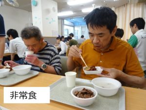 昼食に非常食を提供し、非常用の食器等を体験していただきました。