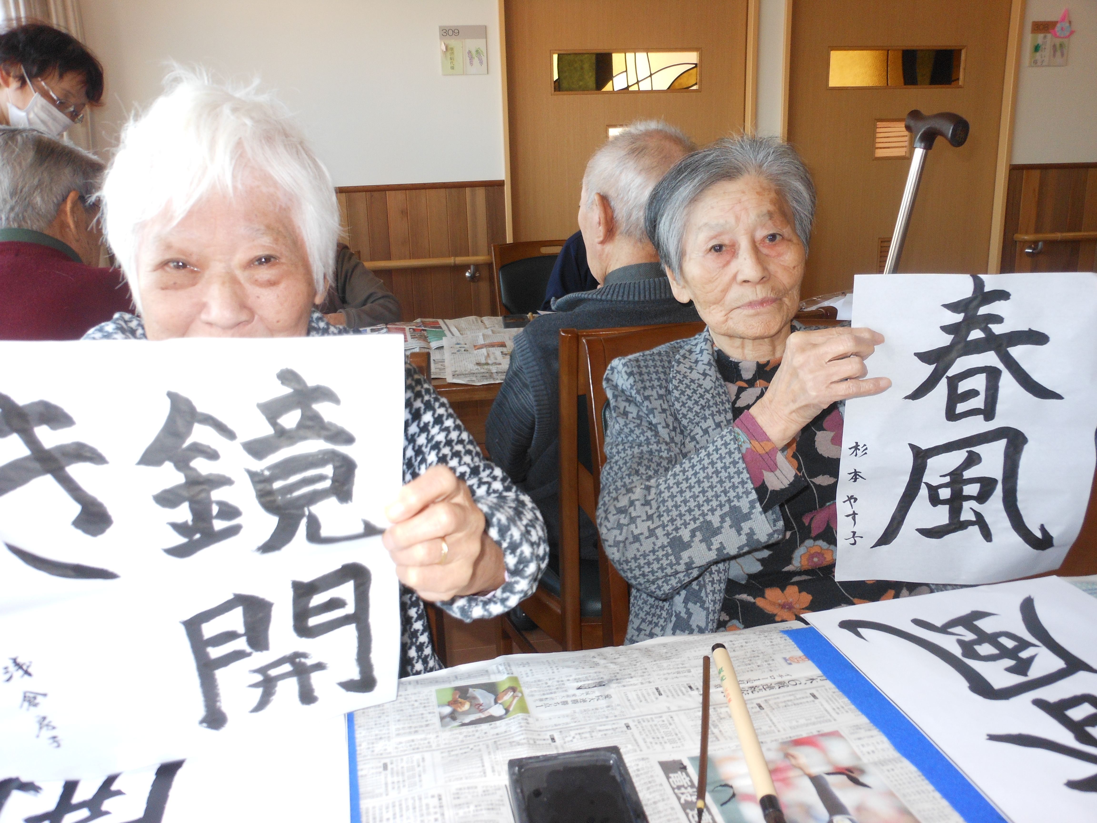 午後からは、書道の先生をお招きし、書初めをしまして、一字一句に想いを込めて真剣に書道に打ち込んでおられました。