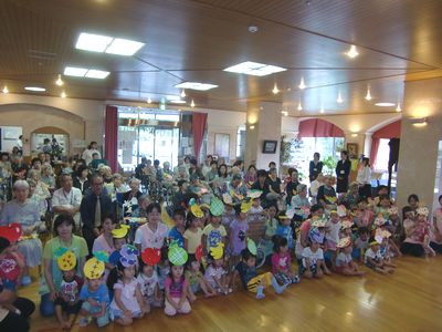 まず福祉村保育園の園児さんがお越しくださり、元気な歌を唄って応援してくださいました。
