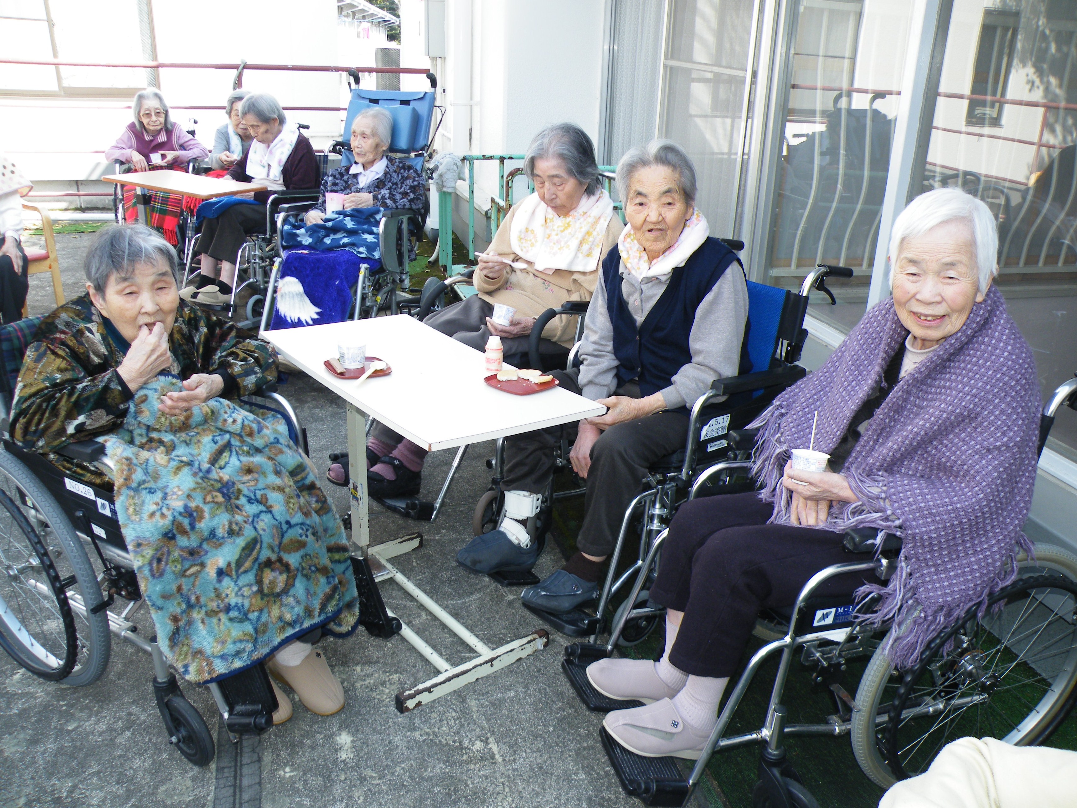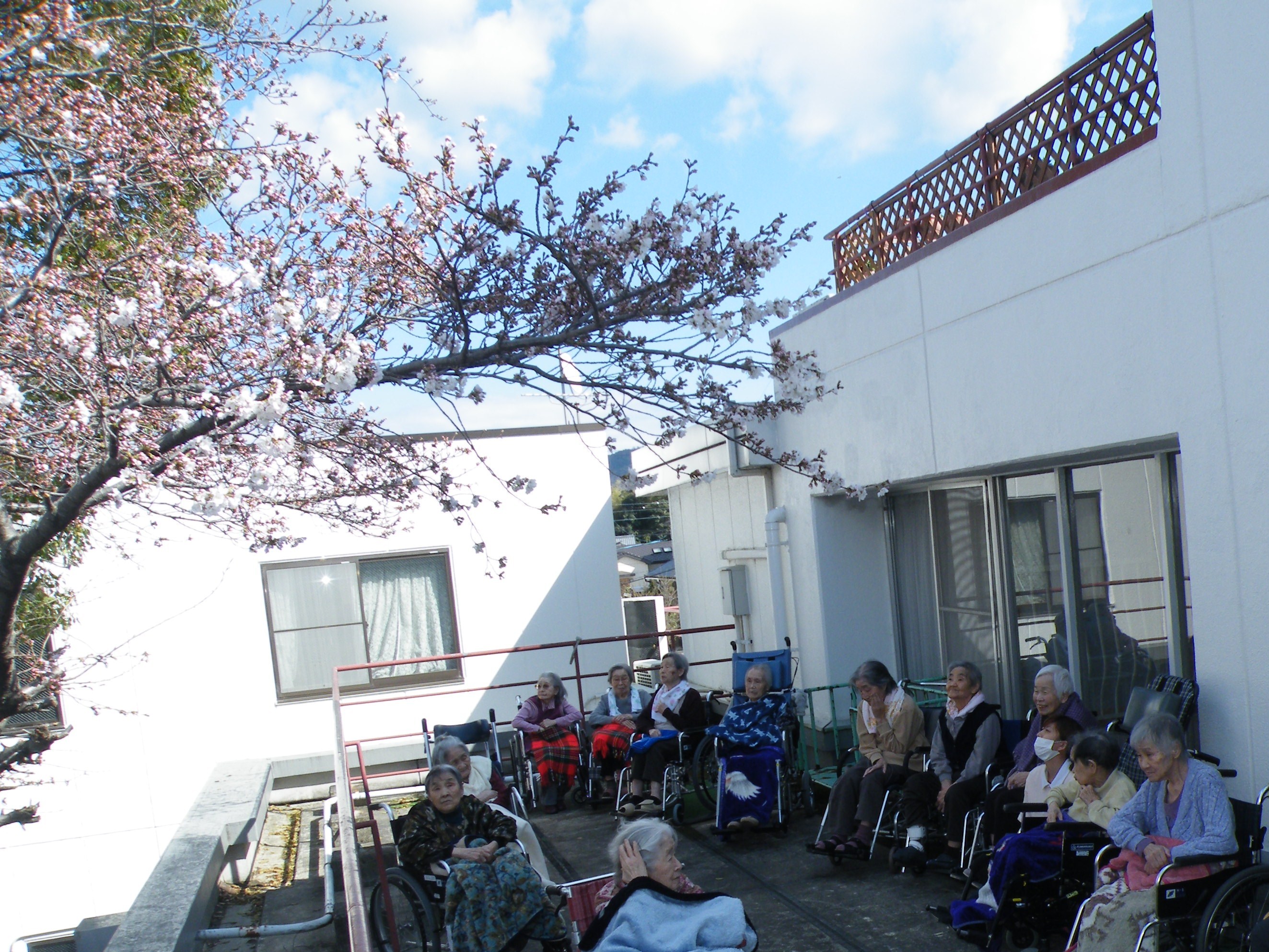 さわらび荘では大きな桜が綺麗に咲き、見頃を迎えています。 本日の午後は快晴で暖かく、実に春らしい陽気となりましたので、入居者の皆様と一緒にお花見をしました。 春の訪れを感じながら、お菓子と飲み物を手に、ゆっくりとした時間を過ごしました。