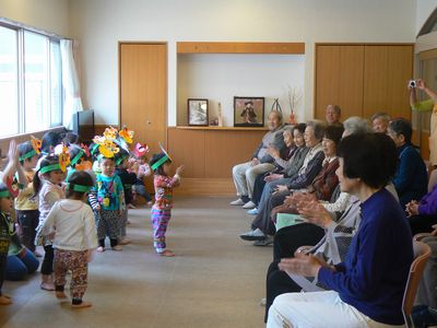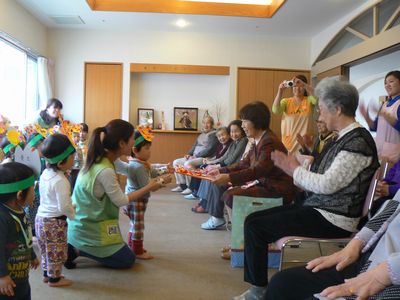 ケアハウスカサデローザでは同じ福祉村敷地内にある福祉村保育園の園児さんと日頃から交流を行っています。