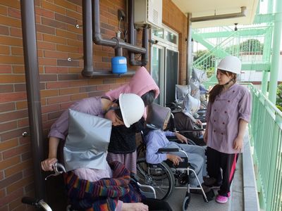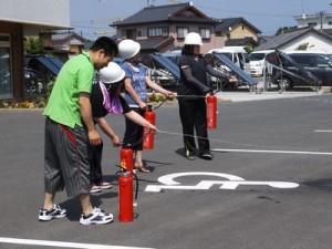 昼間に地震が発生し、また火災も発生したという想定で訓練を行い、全職員で真剣に取り組みました。