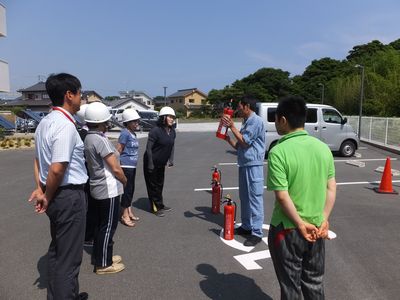 また、訓練終了後には消火器や消火栓の使用方法を防災業者の方から教えて頂きました。