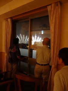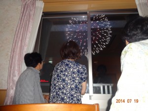 ご入居者様から「こんな最高の場所で花火を観ることができて本当に幸せ」などと喜ばれ、打ち上げ花火、仕掛花火、スターマインが夜空を彩るたびに歓声が湧き上がっていました。