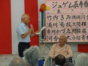ご長寿の横綱、大関、関脇、小結を発表し、それぞれのご家族より、 お祝いの言葉や、お手紙を披露して頂きました。