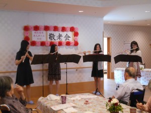 フルート演奏では、全館に響くような透き通った音色を提供していただき、天伯の入所者様と職員一同、とても楽しまさせていただきました。ボランティアの皆様、演奏ありがとうございました。