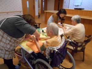 マッサージが終わった入所者様からは、「肌がすべすべになった、綺麗になった。」「気持ちよかった。」と好評をいただき、笑顔を見せてくださいました。