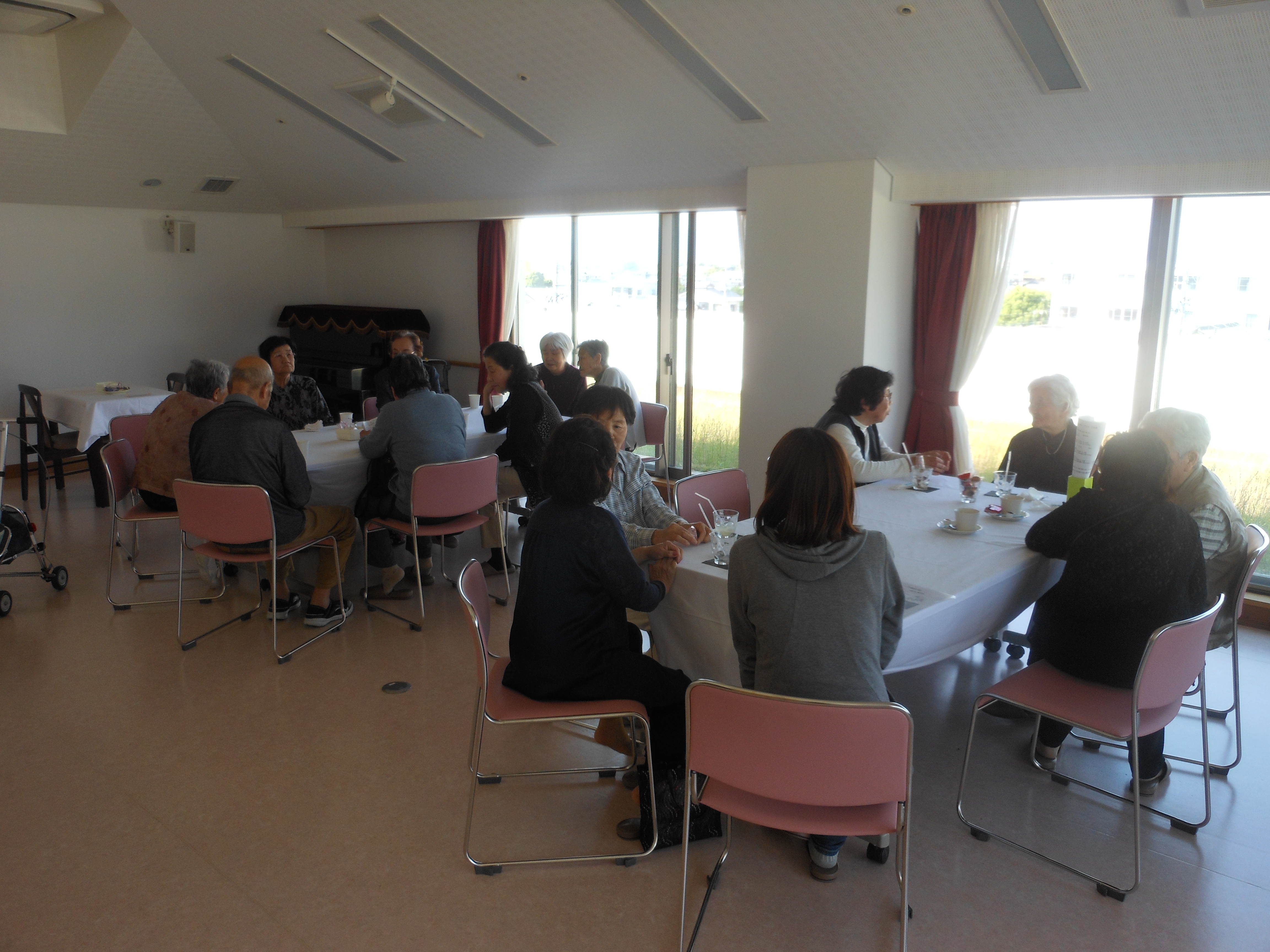 コーヒーや紅茶、お菓子を召し上がっていただきながら、お喋りや音楽、リフレッシュ体操など楽しい時間を過ごしていただきました。