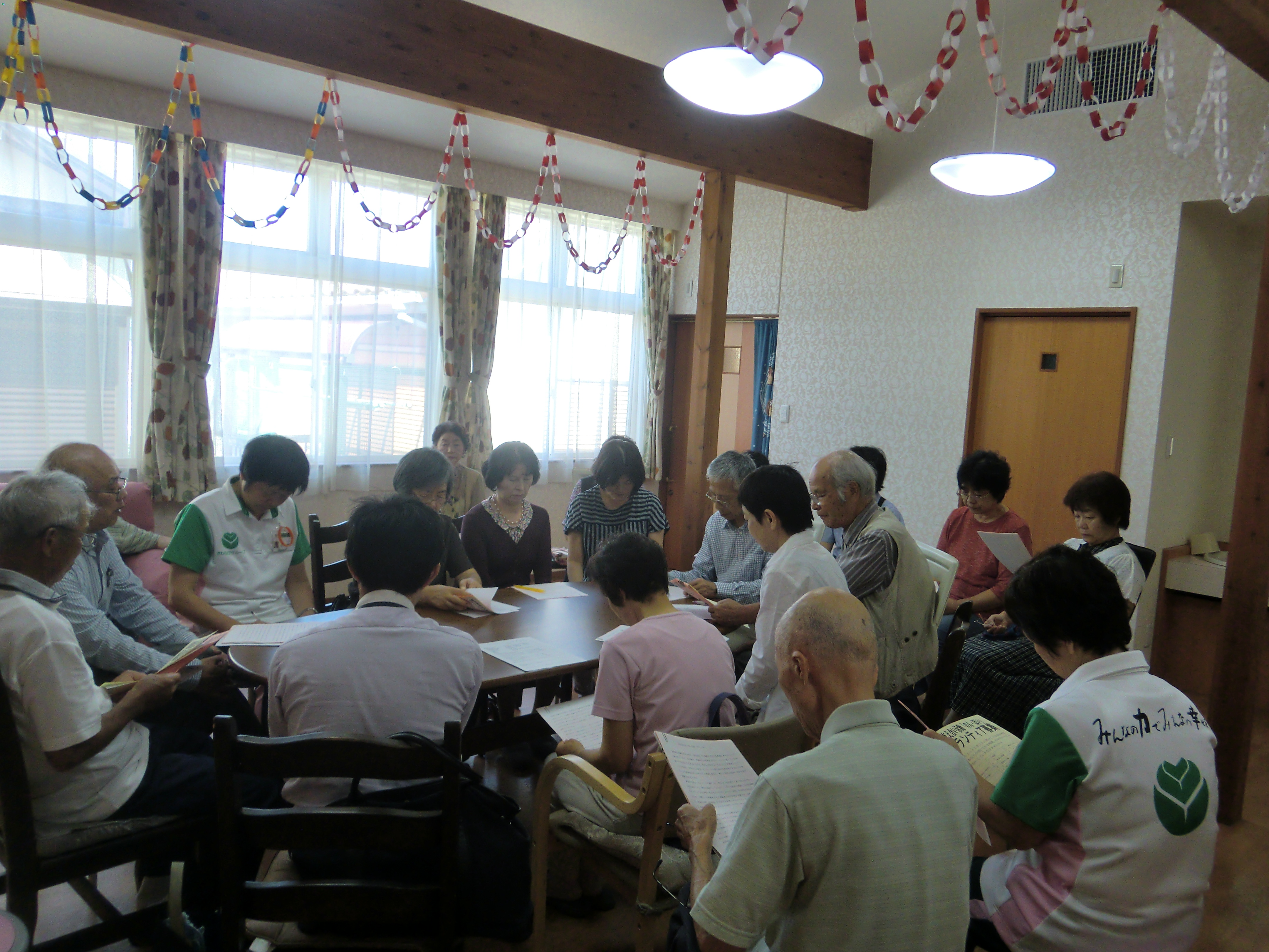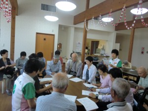 9月28日(月)グループホーム白珠では運営推進会議が開催されました。今回は、岩田校区支え合い活動「のん・ほい」代表、青木哲夫様をお招きして活動内容を報告して頂きました。この活動は、平成27年度豊橋市民共同推進補助事業に選ばれ、岩田校区で暮らす65歳以上の方(一人暮らし、高齢者世帯)のちょっとした困りごとのお手伝いをされています。コーディネーター、ボランティアなど多くの方々が活躍されています。会議には21名の方が参加され、活発に意見交換が行われました。白珠は地域に開かれた施設です。これからも地域の情報を発信して行きたいと思います。(グループホーム白珠 白井)