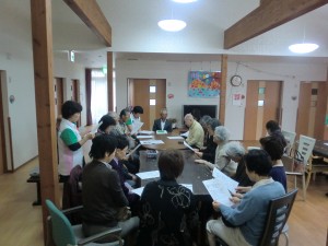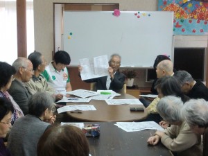 平成27年度第4回運営推進会議を開催致しました。自治会長、民生委員、地域住民、ご家族様など20名の方にご参加いだきました。白珠の前身である、グループホームはりはら時代からお世話になっている、牛川町の星野清様からご自身が体験された豊橋空襲についてお話を伺いました。高齢者の皆様の生きた時代を知る良い機会になりました。皆様にもっともっと幸せに生きて頂きたいと強く思う会議になりました。これからも色々なお話を皆様から伺いたいと思います。よろしくお願い致します。(グループホーム白珠 白井)