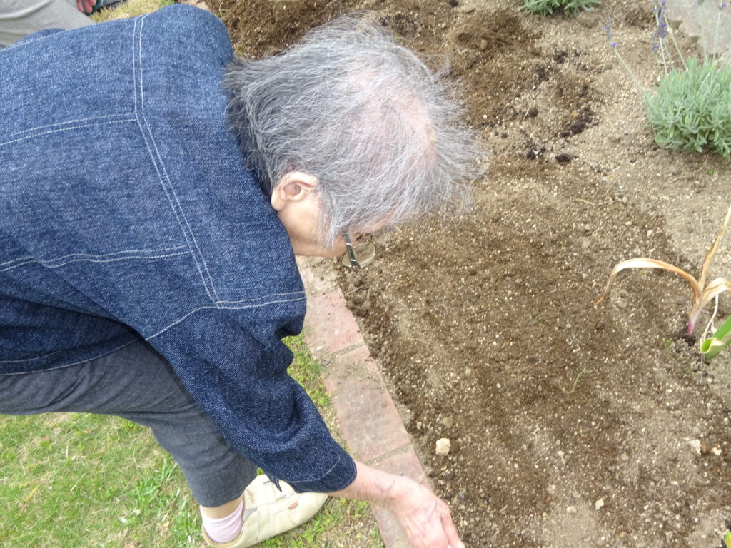 花だんの土を入れ替え、消毒し、野菜の苗を植えました。