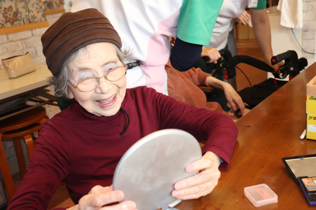 29日(月)フジ3,30日(火)フジ2はユニットごとに分かれてひな祭り会を開催致しました。この日の為に、お内裏様、お姫様の日本髪、扇子、金屏風など職員が手作りしました。14時から女性はお化粧をして多目的室に移動して頂きました。ひな祭りの歌から始まりその後、順番に着物に着替えて頂き金屏風の前で撮影会が始まりました。「似合いますね。」「綺麗ね。」とあちらこちらから声がかかり、皆様は照れながらも笑顔があふれていました。(フジ白井)