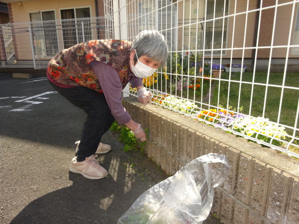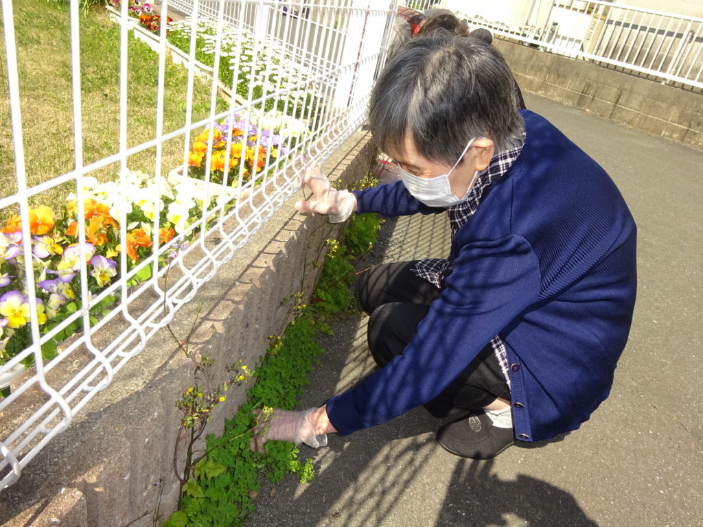 庭の草が伸びているのを見て入居者の方から