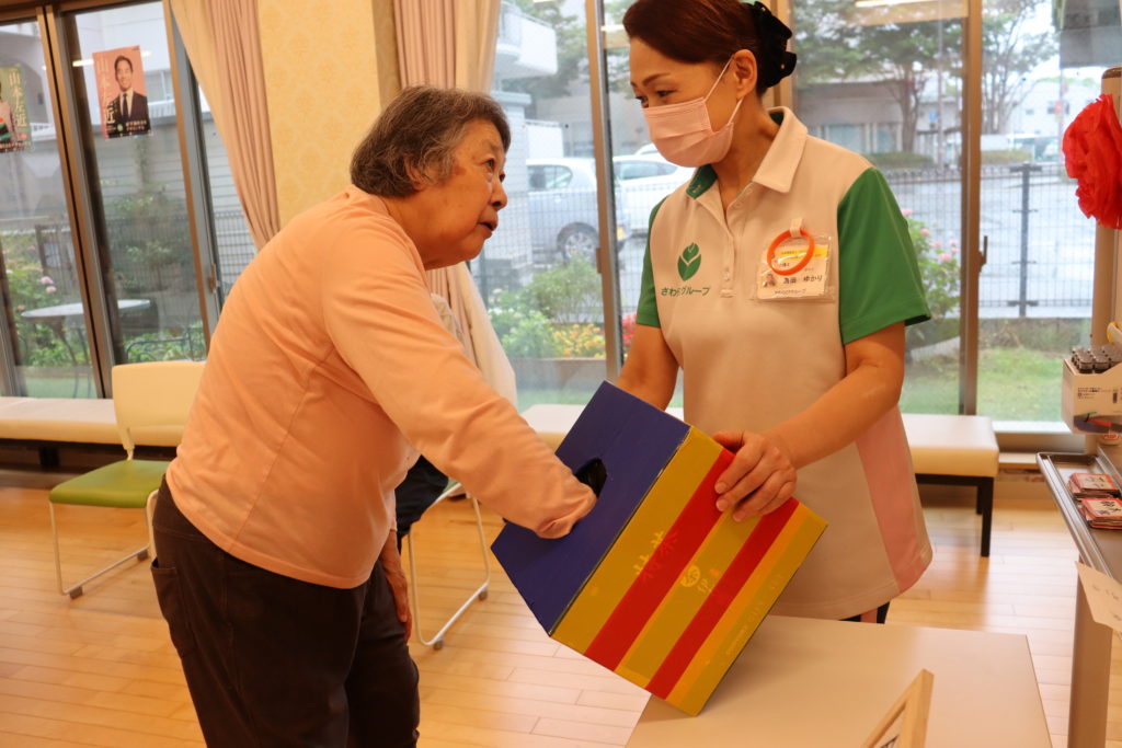 新型コロナウイルス感染症予防対策の為、フジではお楽しみ会を2日間に分けて開催致しました。今回のお楽しみ会は、入居者様おひとりおひとりが、お店のメニューからお好きな物を選びお取り寄せしました。ステーキ、ハンバーグなど色々ありましたが、その中でも一番人気は「ウナギ」でした。また、食後のデザートはくじ引きで決めて頂き、お腹が一杯になりました。楽しいお楽しみ会になりました。 (フジ白井)