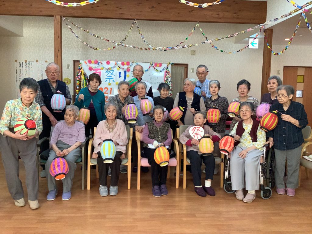 今年もご家族抜きの夏まつりになりましたが、飾りつけのちょうちん作りから始まり