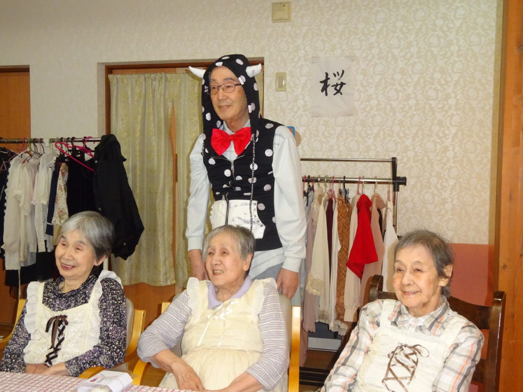 「こんな派手なの着たことないわ」と言いながら鏡を見つめる方もいたり、男性陣は手作り蝶ネクタイの色選びに盛り上がったりと楽しい会になりました。
