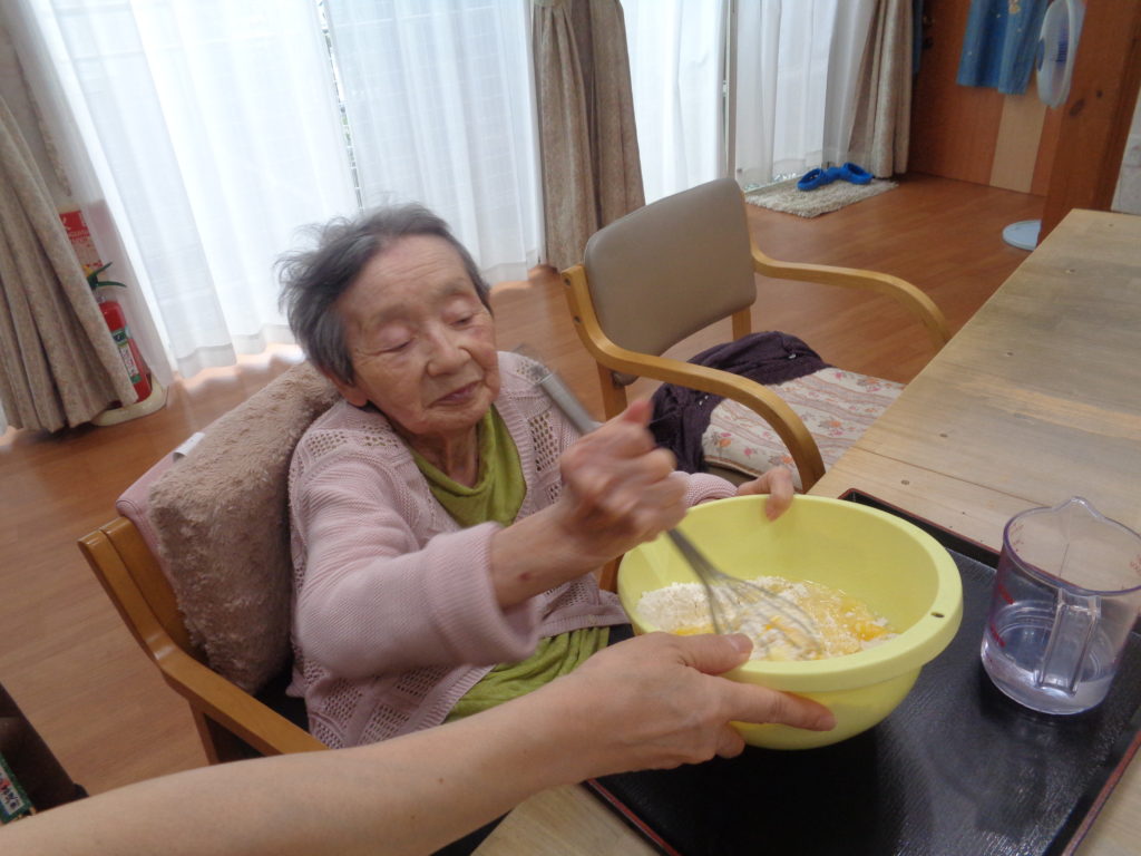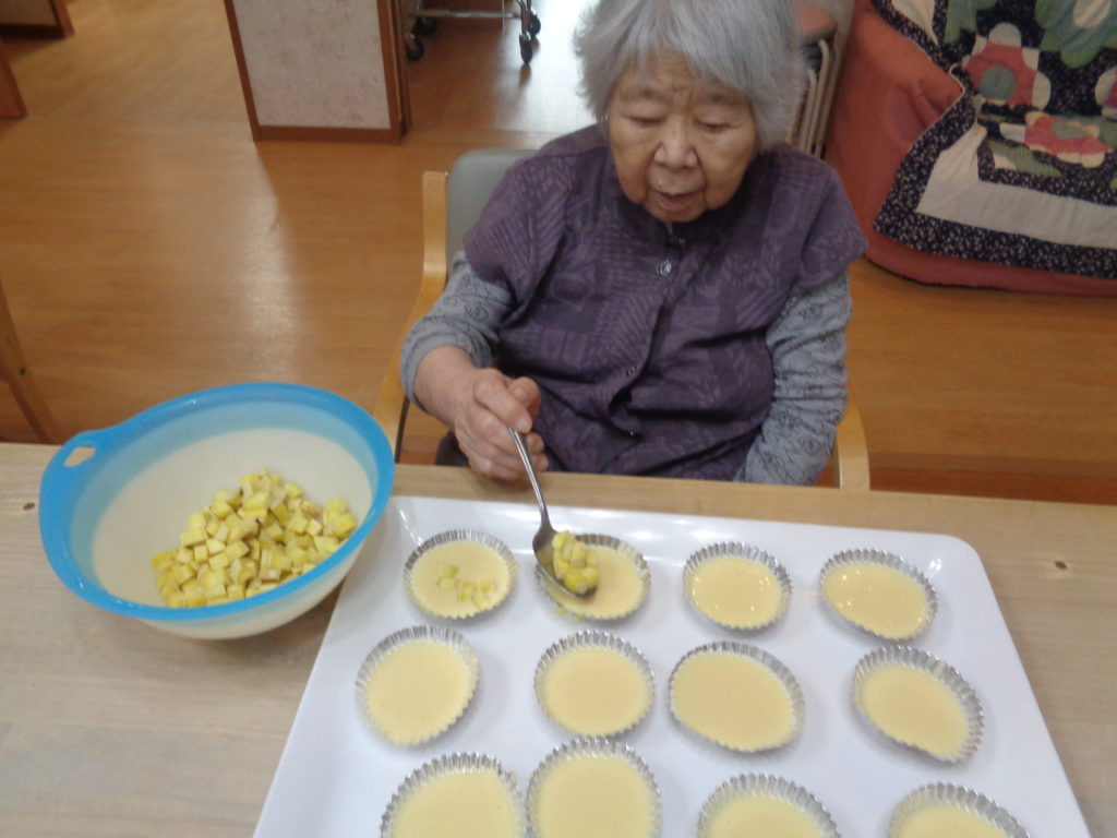 レーズンを入れ混ぜる人、カップに入れる人と役割分担しました。