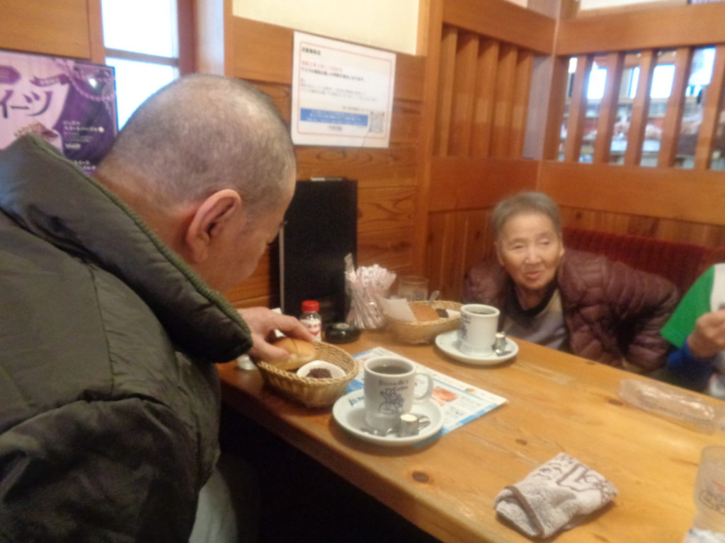 帰りは歩けない方もありましたが、コーヒーは美味しい」と皆さん笑顔で戻りました。