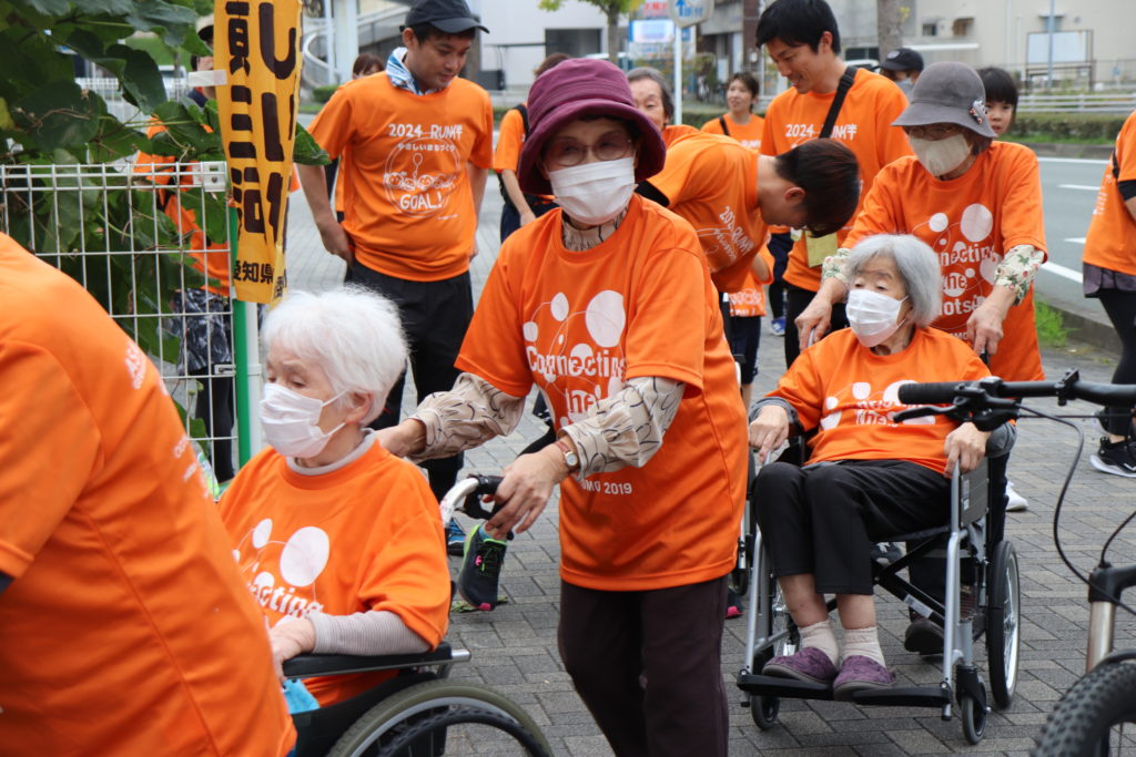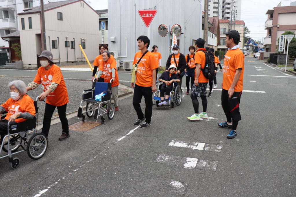 ラン伴豊橋のイベント北ルートに入居者様と一緒に参加致しました。当日はご家族様を始めとして地域ボランティアの皆様にご協力を頂きました。参加者はお揃いのオレンジ色Tシャツを着てゴールを目指しました。施設玄関では、旗を振り「頑張れ、頑張れ。」の熱い声援も頂き無事完走できました。(フジ 白井)