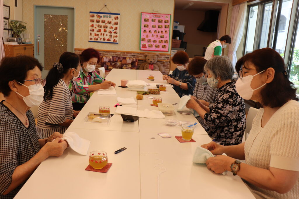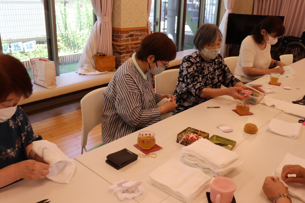 グループホーム フジ地域活動「ちくちくハンド」を再開致しました。新型コロナウイルス感染症予防対策として、しばらくの間活動を休止していました。本日は、懐かしいメンバー7名と新メンバー2名が参加され、ちくちくと針を進めました。毎月1回活動、次回は7月7日(月)予定、ご興味のある方は是非参加して下さい。お待ちしております。(フジ 白井)