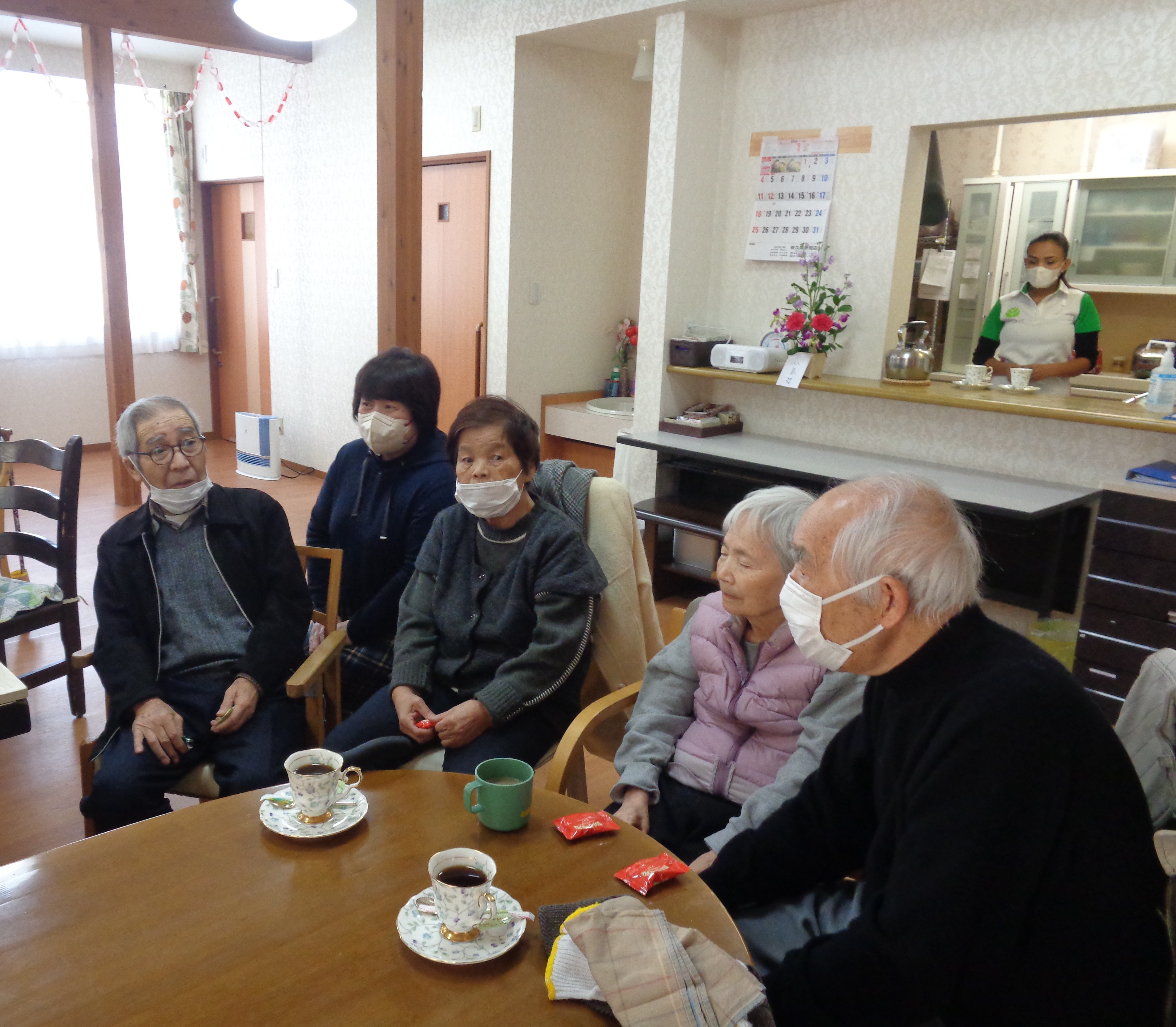 コーヒーとお菓子をいただきながらまったりとした時間を過ごしています。