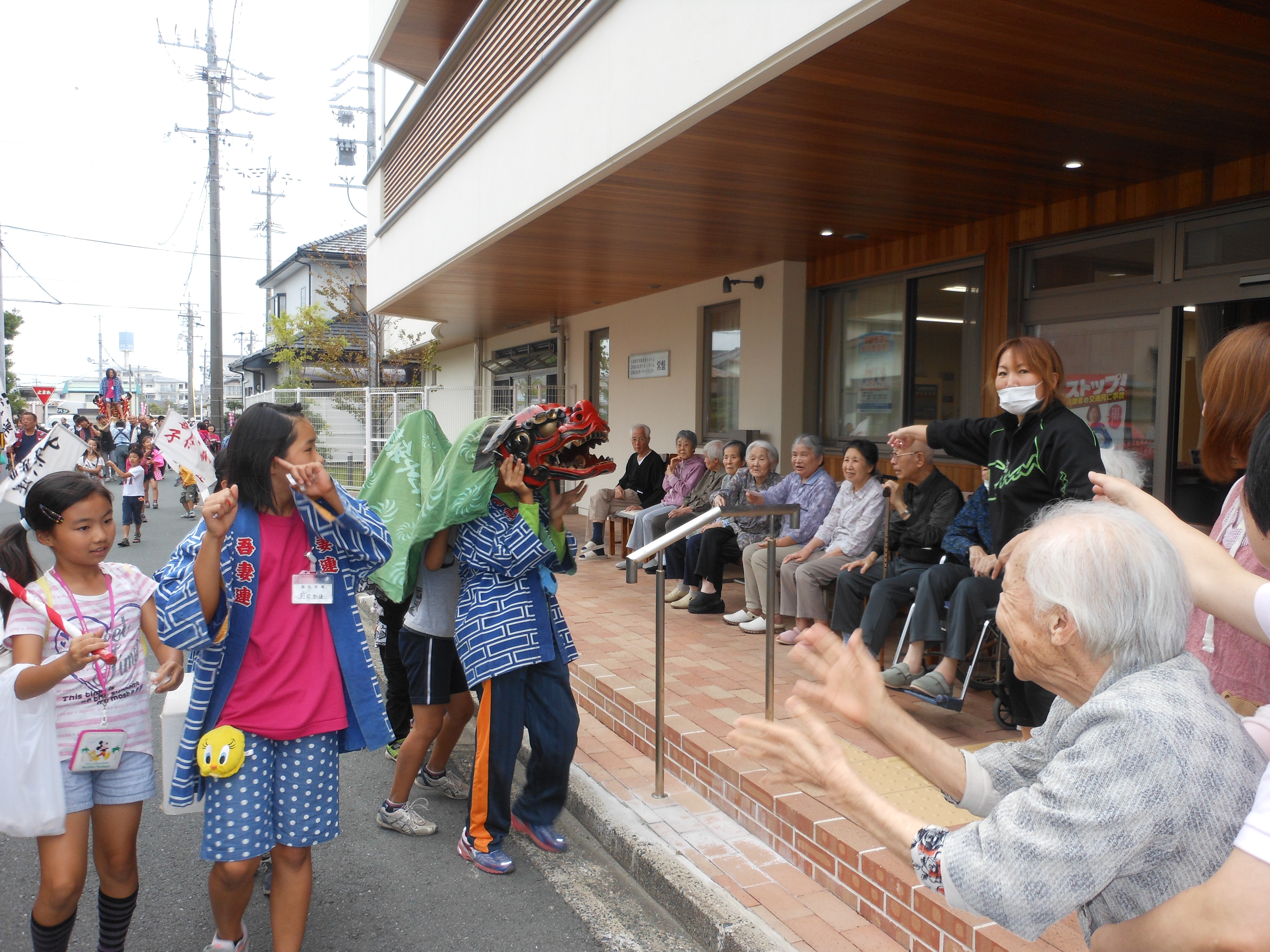地域の皆様のご好意によりお神輿や獅子舞が常盤にも来てくださいました。