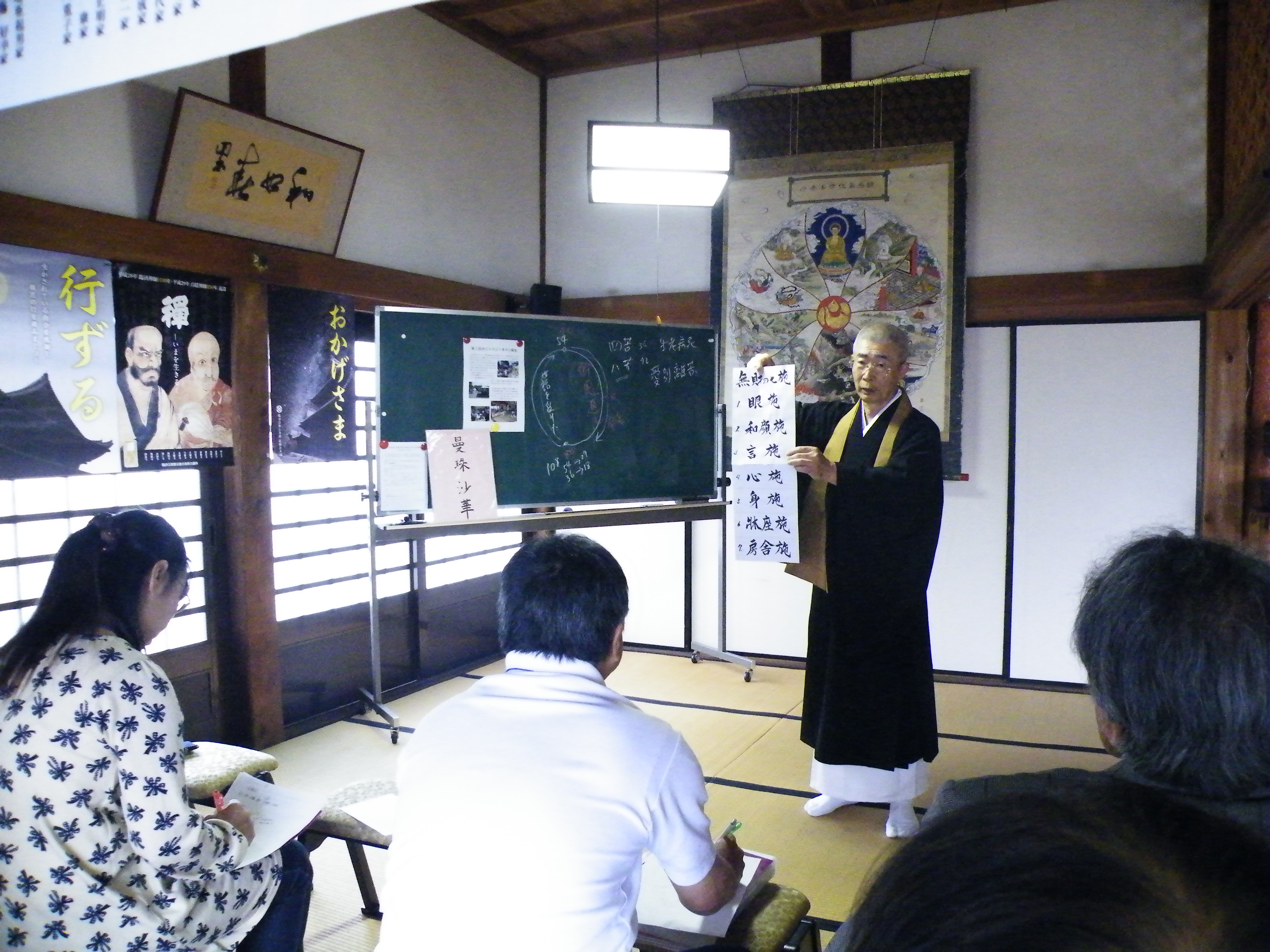 生活・介護支援養成サポーターの4日目が開講されました。当日は、会場となった正圓寺の金仙宗哲住職による「人の一生について考える」、実結の木音楽教室の下山恵子先生による「音楽と共に生きる」をテーマとして講義を行って頂きました。(白井)