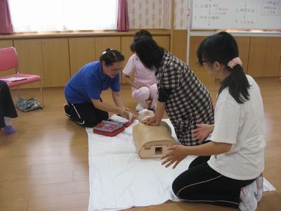 心肺蘇生法やAED(自動体外式除細動器)についての座学に引き続き、人形を用いての実践的な訓練を行い、「AEDの使い方が分かってよかった」と参加された皆さんから言って頂きました。