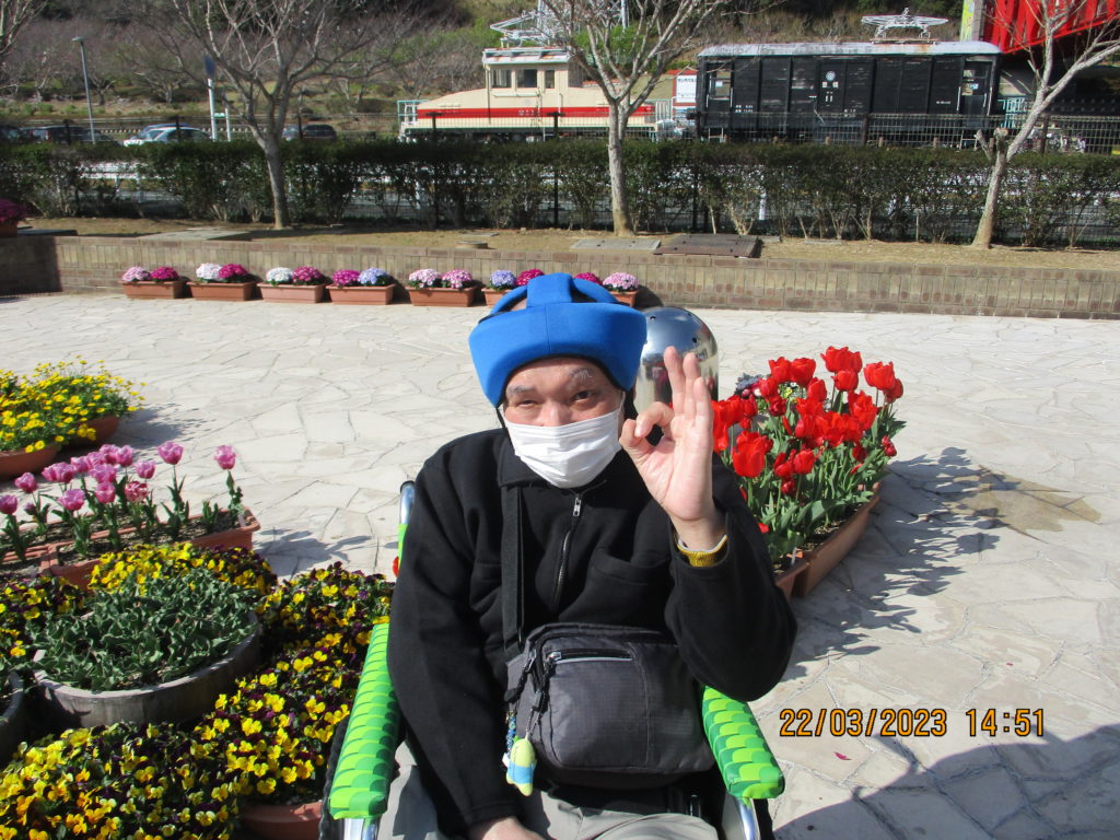 日時:2023年3月22日 場所:サンテパルク田原 3月22日にバスでサンテパルク田原に向かいました。暖かい空気と日差しを浴びながら春の花を見て回り、コーヒーを飲んで楽しいひと時を過ごしました。 (生活支援員 片山)