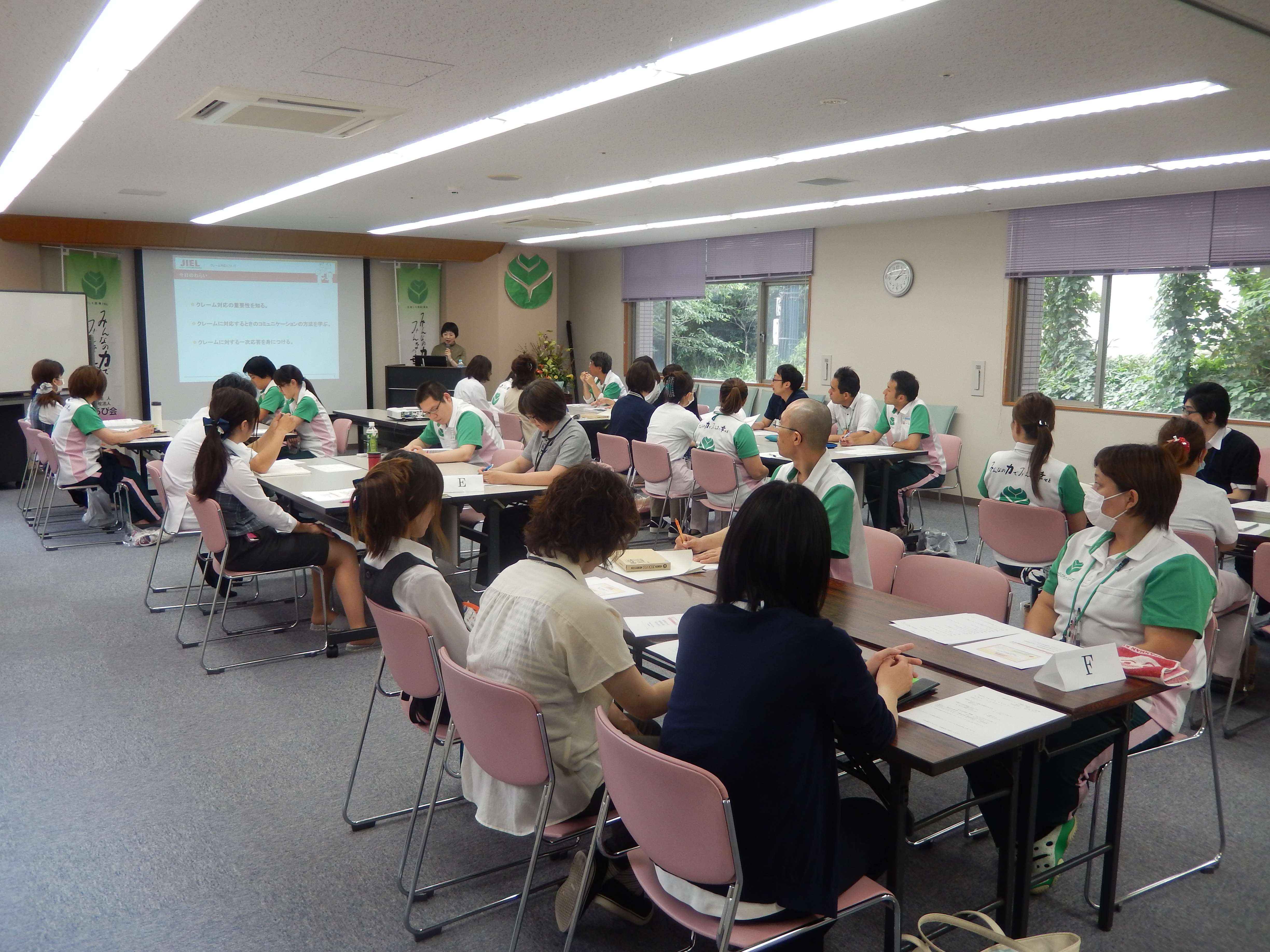 さわらび会中堅職員を対象に「クレーム対応」について研修を行いました。水野様には、30名を超える職員に対し、クレーム対応の重要性、コミュニケーションの方法、対応のポイントをわかりやすく説明していただきました。また事例を設定していただき、グループワークで普段の自分の対応と、望ましい対応を考えました。クレームに隠されたニーズを見つけ共感し言葉にして確認し、解決へステップしていくことで患者様、ご利用者様の満足につなげられるよう、今後も対応を学んでいきたいと思います。(あかね荘真鍋)
