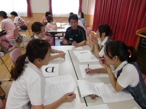 自己紹介をした後、グループ内で共通点を探し、全グループに発表をしてもらいます。その後、実際に行なわれたグループ内でのコミュニケーションのとり方を振り返ります。