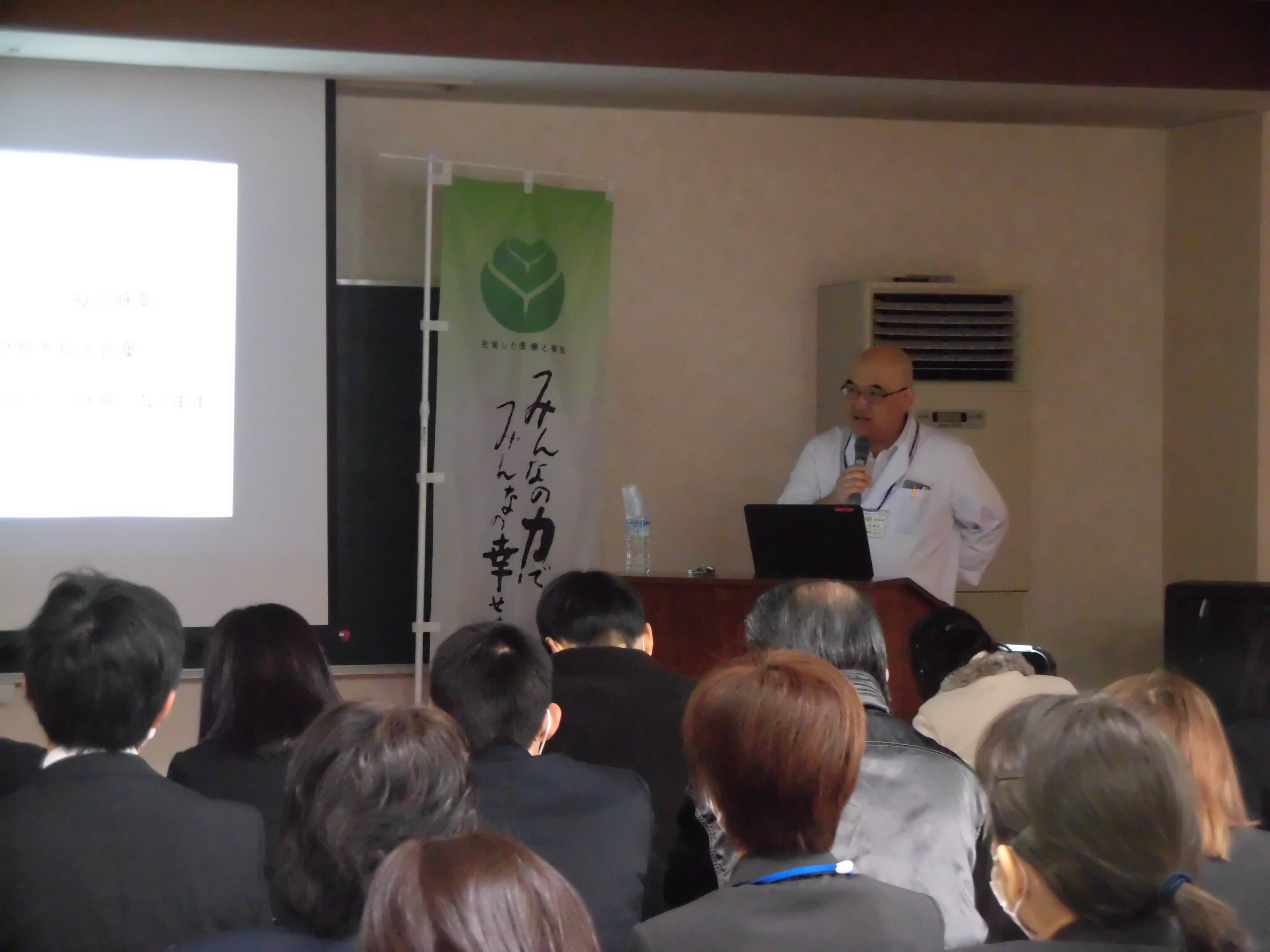 伊苅弘之副院長「認知症について」では、認知症の定義や認知症に至るさまざまな病気などについて述べられました。また認知症の対応に困ったときは、認知症ケアの3原則に立ち戻ることにより、解決できることが多いと締めくくられました。