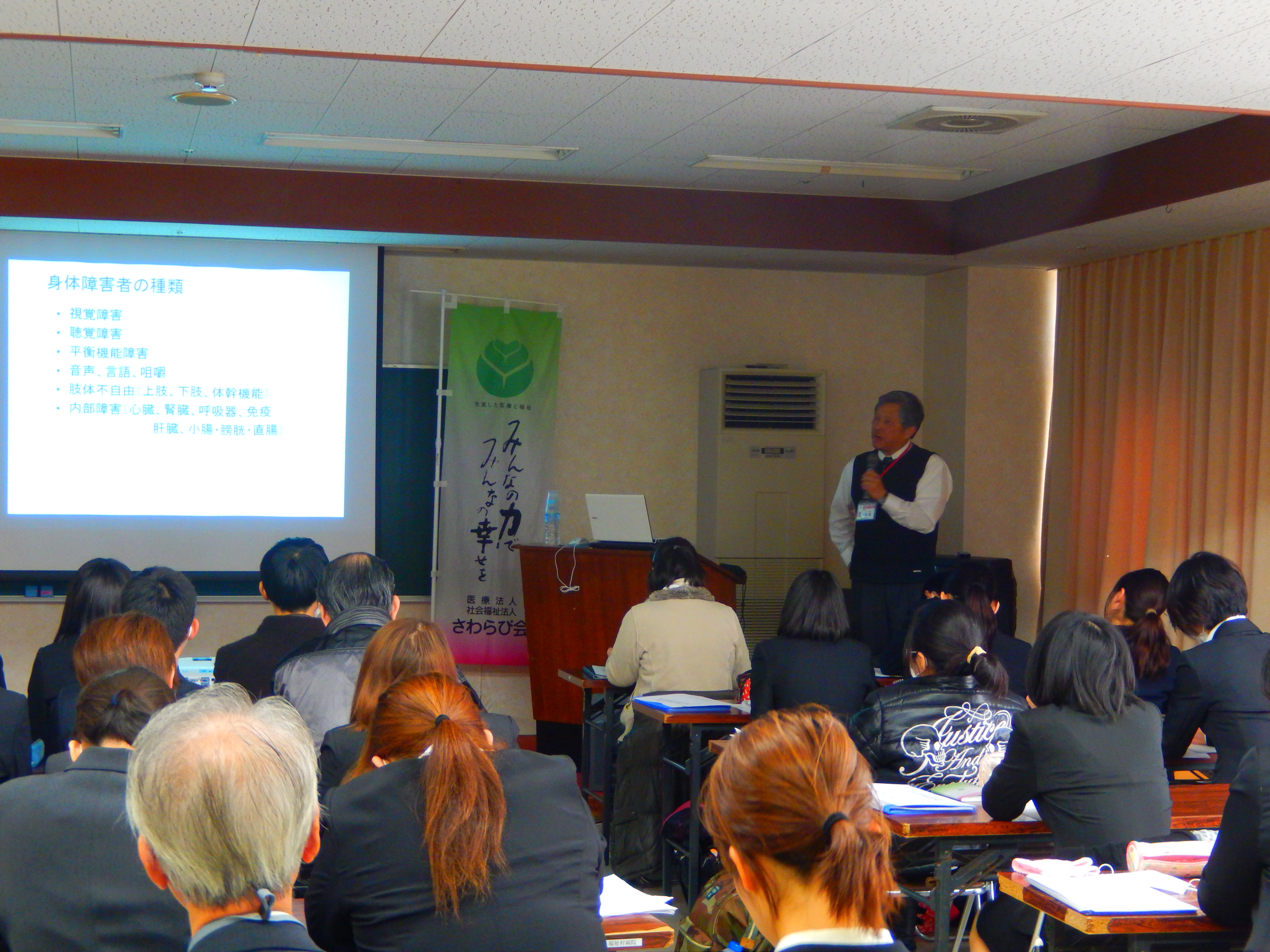 13:20~ 講義「身体障害者福祉について(1)」 講師:森正比古施設長(珠藻荘)