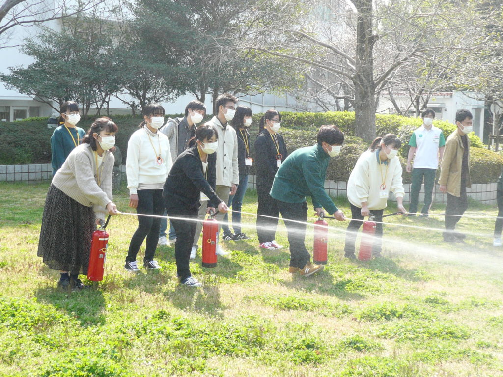 防火管理者による、消火器の使用法の講義と実演がありました。